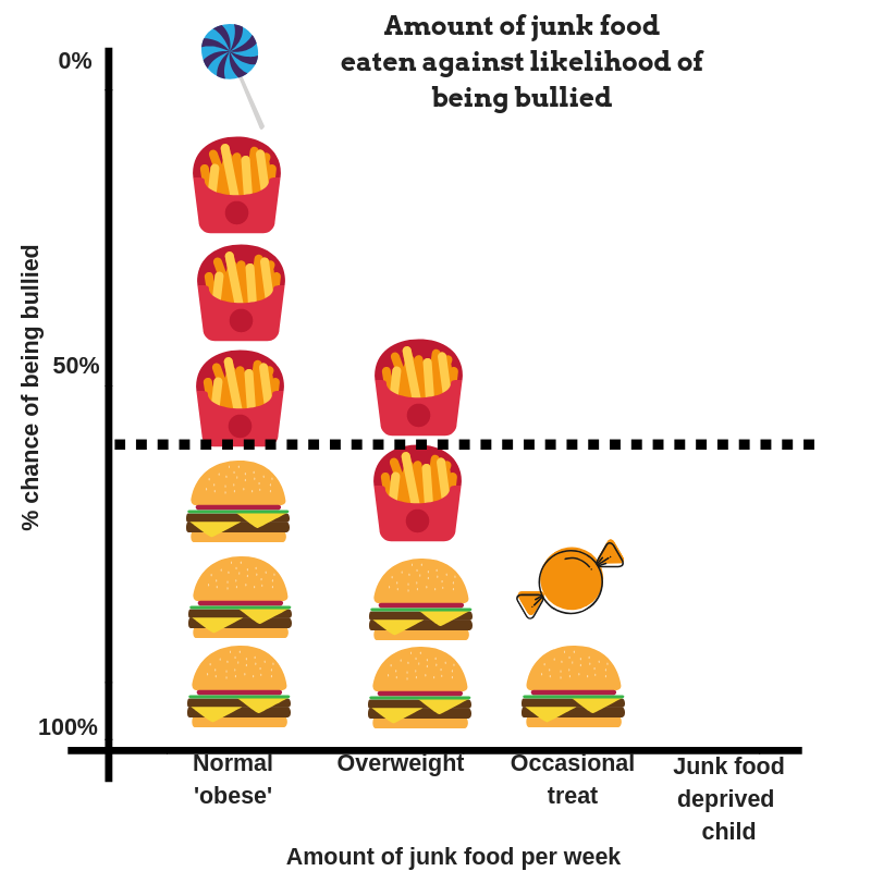 Round figures as illustrated in the diagram below illustrate that the less junk food your child eats the more likely they will be different and get picked on